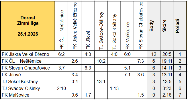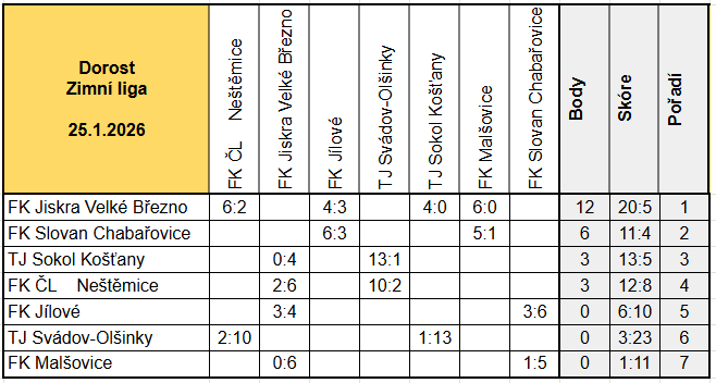 Průběžná tabulka zápasů.