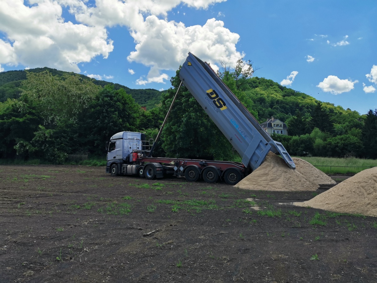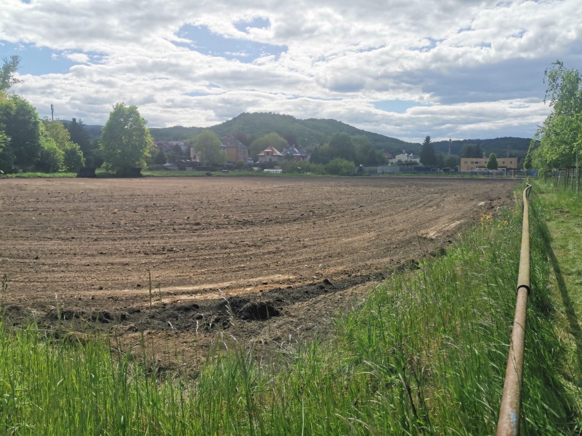 Tak už se to začíná rýsovat. Stavba tréninkového hřiště se rozběhla. V další fázi přijde řada na rovnání, příprava vegetační vrstvy, osazení závlahy, zasetí trávníku a budeme čekat, až se zazelená.