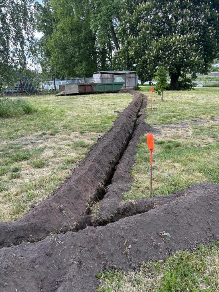 27. červen - zapojena automatická závlaha na novém tréninkovém hřišti, nic nebrání zasetí trávníku.