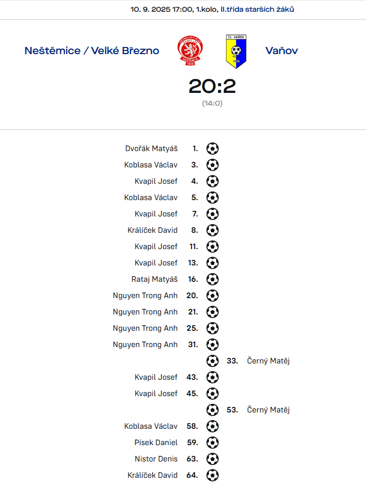 Neštěmice/Jiskra - Vaňov 20:0