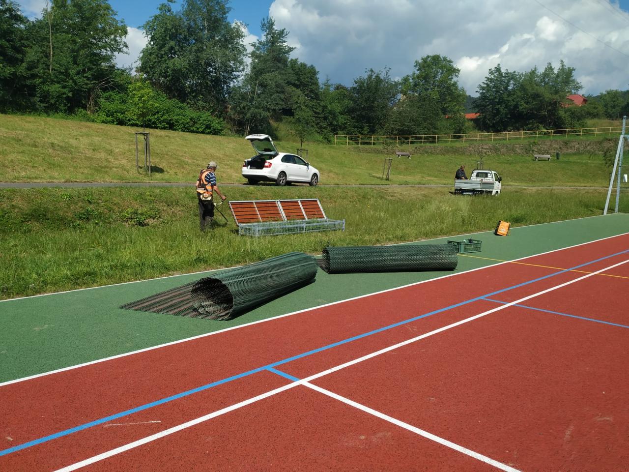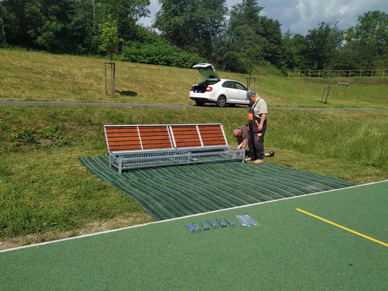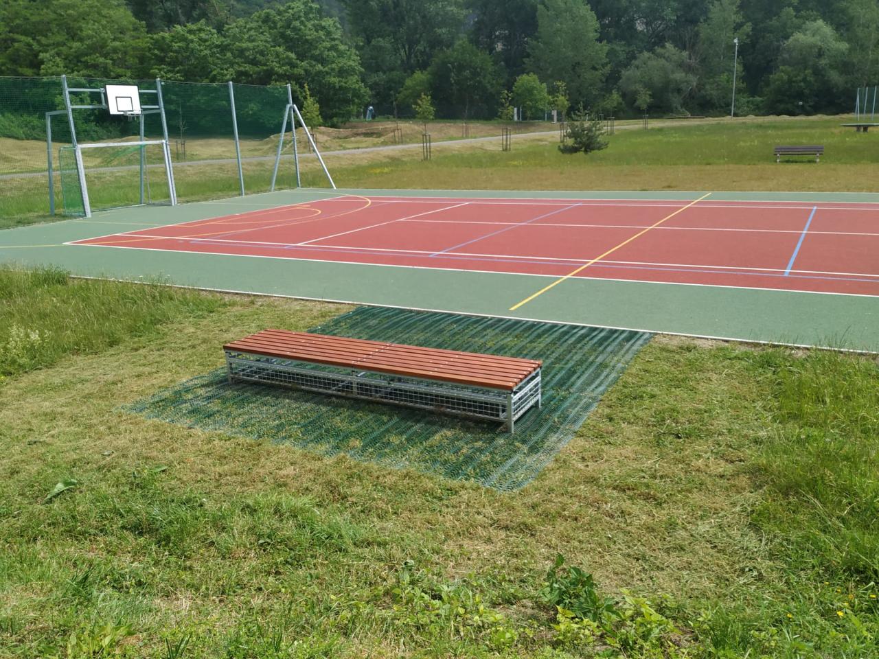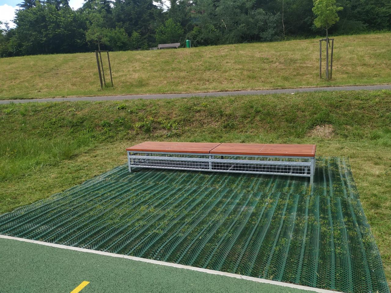 Na jaře 2024 jsme instalovali lavičku na úschovu konstrukcí pro volejbalovou síť a rohož pro lepší pohodu při sezení.