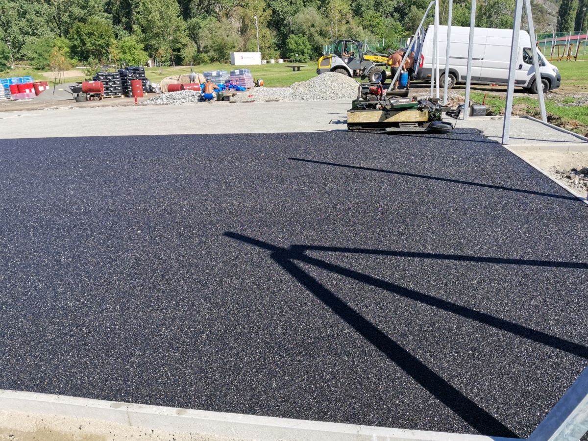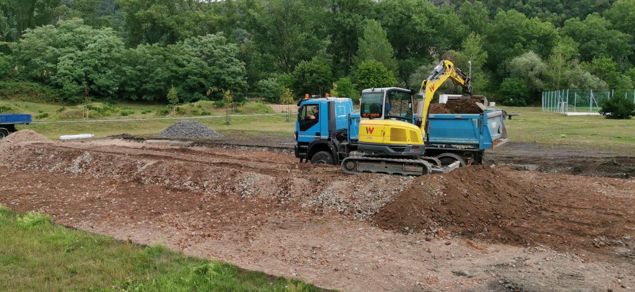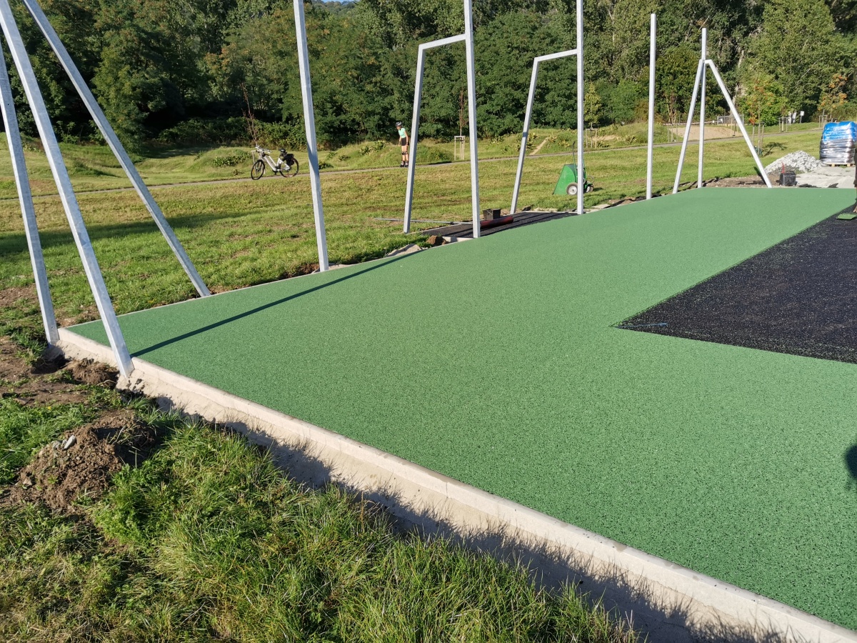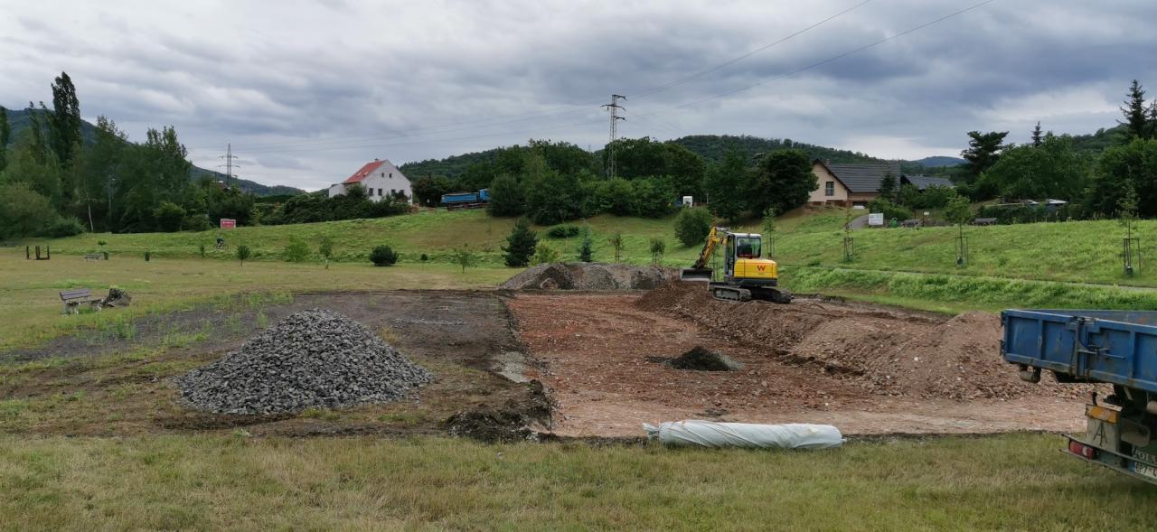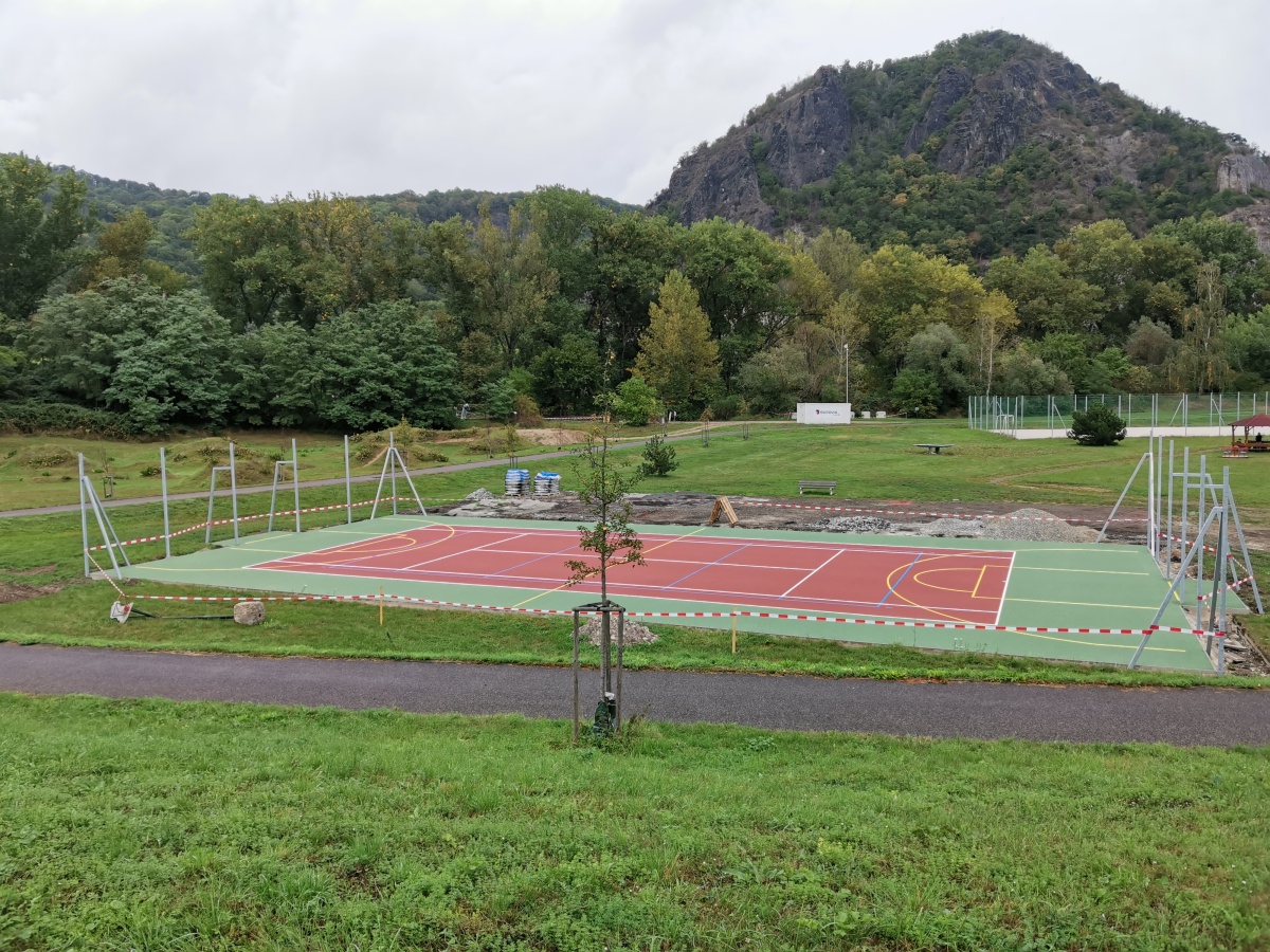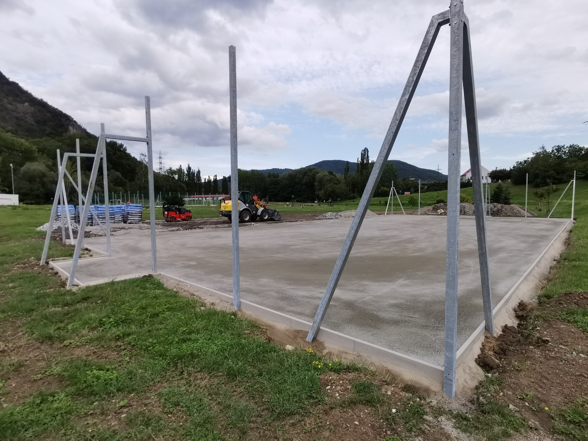 Rekonstrukce sportoviště ve valtířovské pískovně - 2023. Nové multifunkční hřiště s umělým povrchem nahrazuje původní hrubou asfaltovou plochu s rozbitým basketbalovým košem.