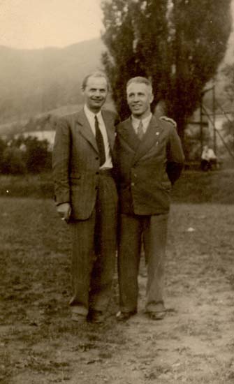 Rok 1973 - Brigádníci na přístavbě ubytovny TJ Jiskra Rudolf Slezák a Karel Traup.
