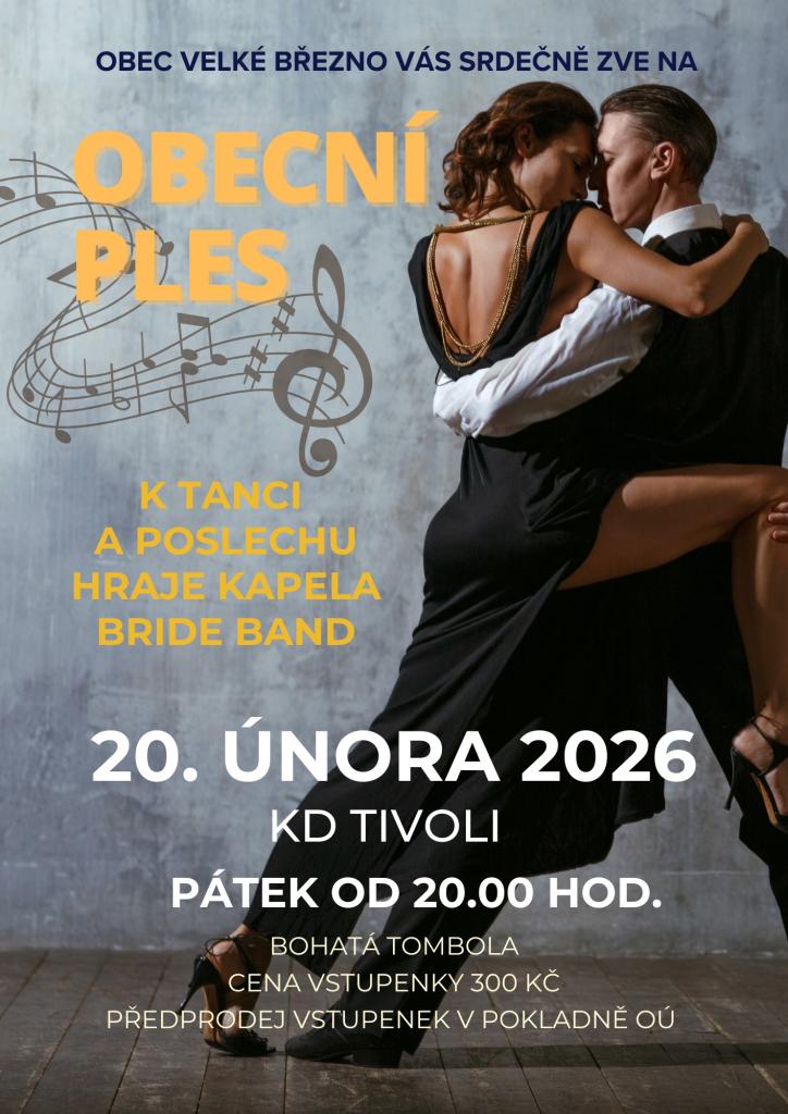 Předprodej vstupenek na obecní ples bude zahájen 19. 1. 2026, vstupenky bude možné zakoupit v pokladně OÚ.