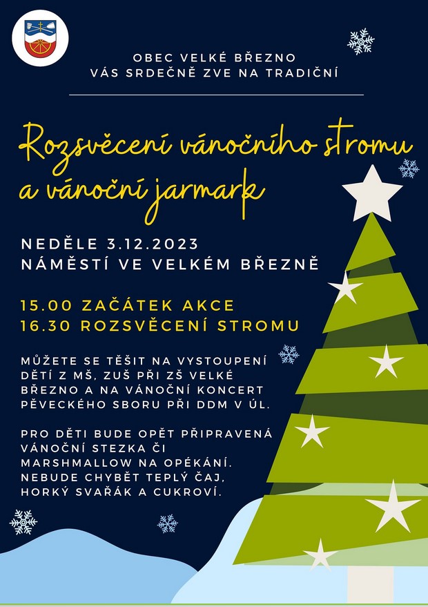Obec Velké Březno Vás srdečně zve na tradiční rozsvěcení vánočního stromu a vánoční jarmark. Více informací v příloze