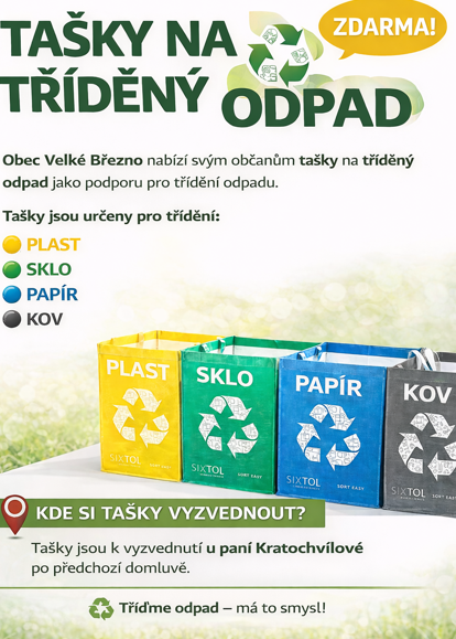 Obec Velké Březno nabízí svým občanům tašky na tříděný odpad jako podporu pro třídění odpadu.