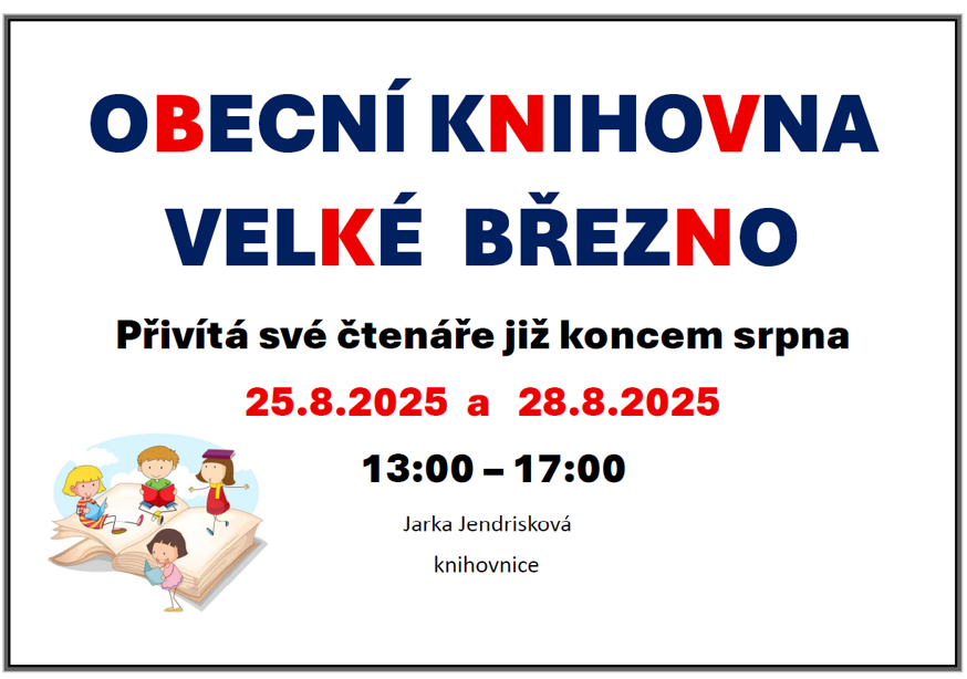 Otvíráme knihovnu už poslední prázdninový týden - 25. a 28. srpna 2025.