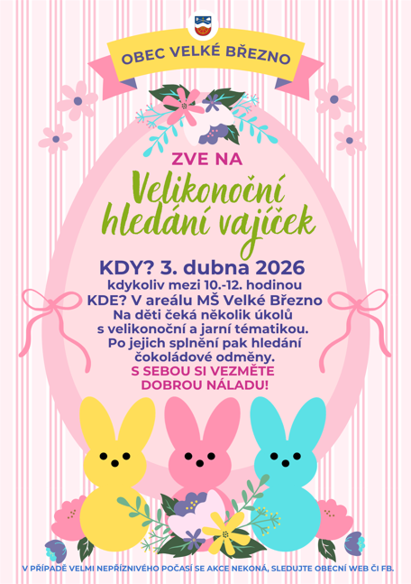 Obec Velké Březno zve na Velikonoční hledání vajíček dne 3. dubna 2026.