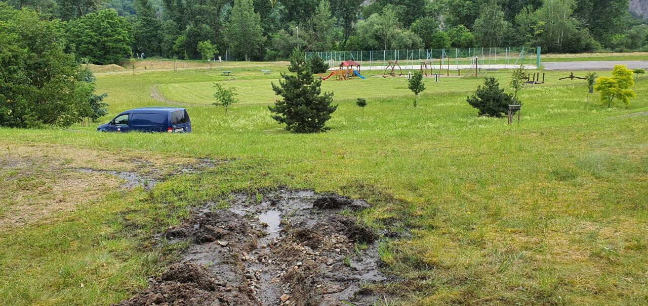 Zaměstnanci VaK v pátek spolu s odbornou firmou řešili vyústění svodu dešťové vody z komunikace nad pískovnou ve Valtířově, na níž se při silnějších deštích tvoří obří kaluž plná vody. Roura, která měla vodu z komunikace odvádět, byla při výstavbě sportovního areálu v pískovně z neznámého důvodu zaslepená a neplnila tak vůbec svůj účel. Po vyčištění odtoku vody nic nebrání, ale je ještě potřeba dořešit, jak bude vyústění dešťového svodu v pískovně zakončeno, aby bylo funkční a přitom nevadilo návštěvníkům.